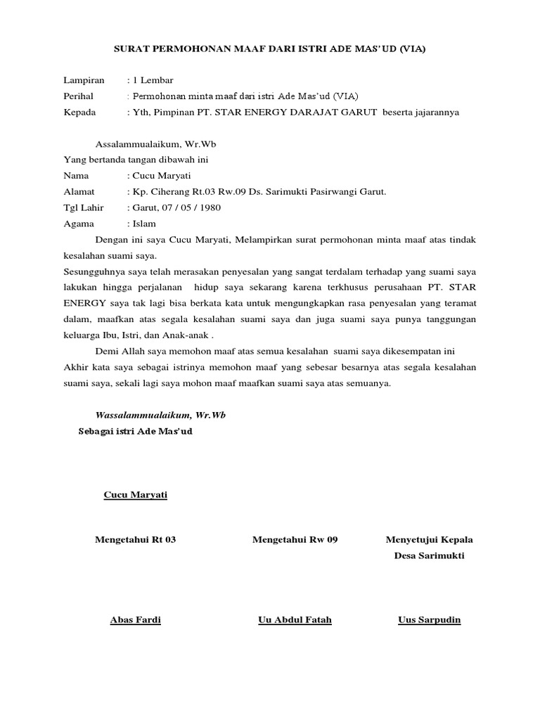 Surat Permohonan Maaf Dari Istri Ade Mas Ud Via Wassalammualaikum Wr Wb Pdf